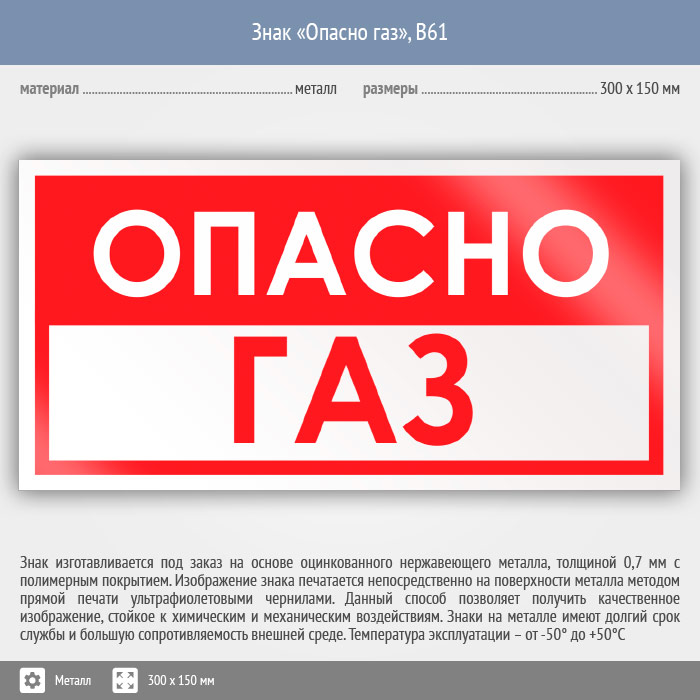 Знак «Опасно газ», B61 (металл, 300х150 мм) в Ульяновске купить