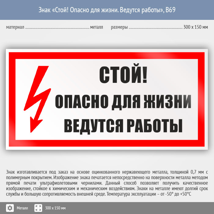 Знак «Стой! Опасно для жизни. Ведутся работы», B69 (металл, 300х150 мм) в Ульяновске купить