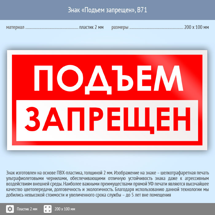 Знак «Подъем запрещен», B71 (пластик, 200х100 мм) в Ульяновске купить