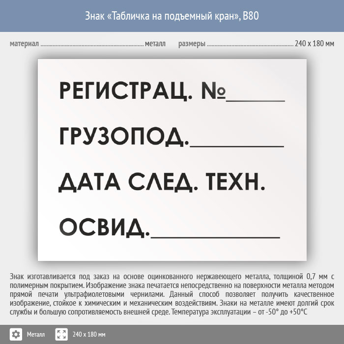Знак «Табличка на подъемный кран», B80 (металл, 240х180 мм) в Ульяновске купить