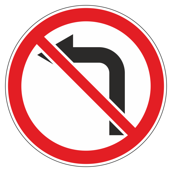 Дорожный знак 3.18.2 «Поворот налево запрещен» (металл 0,8 мм, II типоразмер: диаметр 700 мм, С/О пленка: тип А коммерческая) в Ульяновске купить