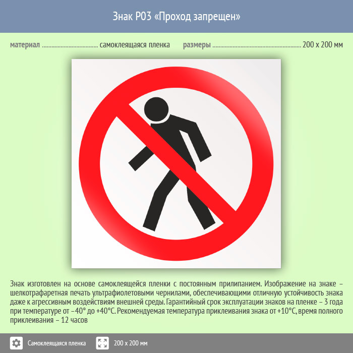 Знак P03 «Проход запрещен» (пленка, 200х200 мм) в Ульяновске купить