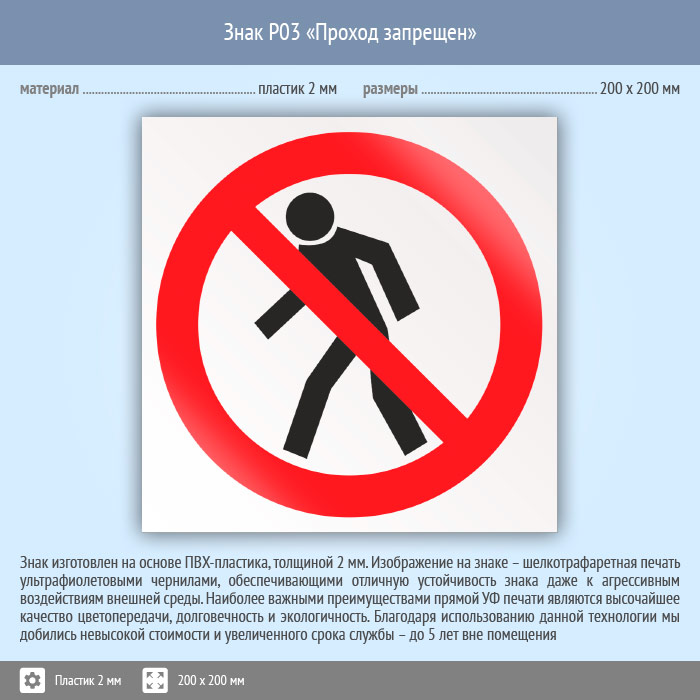 Знак P03 «Проход запрещен» (пластик, 200х200 мм) в Ульяновске купить