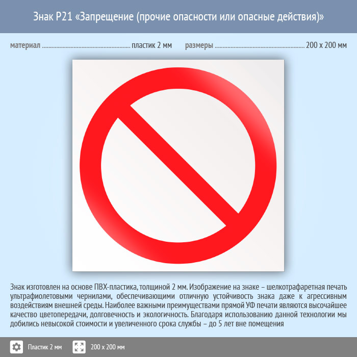 Знак P21 «запрещение (прочие опасности или опасные действия)» (пластик, 200х200 мм) в Ульяновске купить