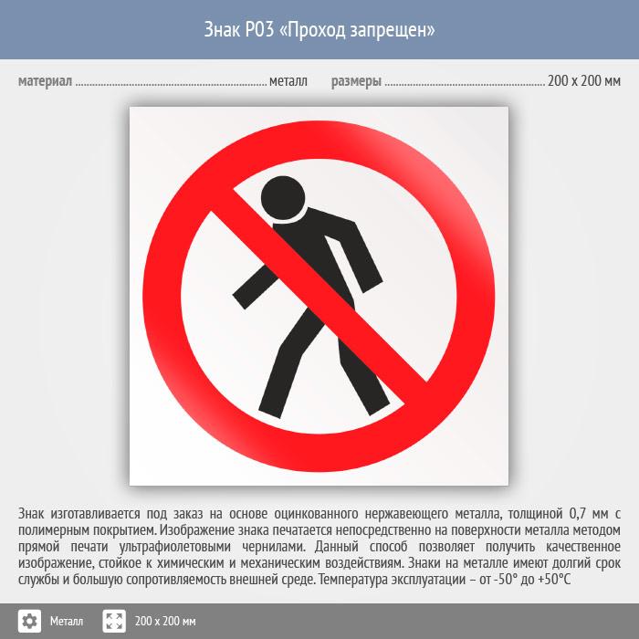 Знак P03 «Проход запрещен» (металл, 200х200 мм) в Ульяновске купить