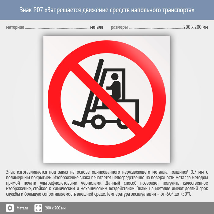 Знак P07 «Запрещается движение средств напольного транспорта» (металл, 200х200 мм) в Ульяновске купить