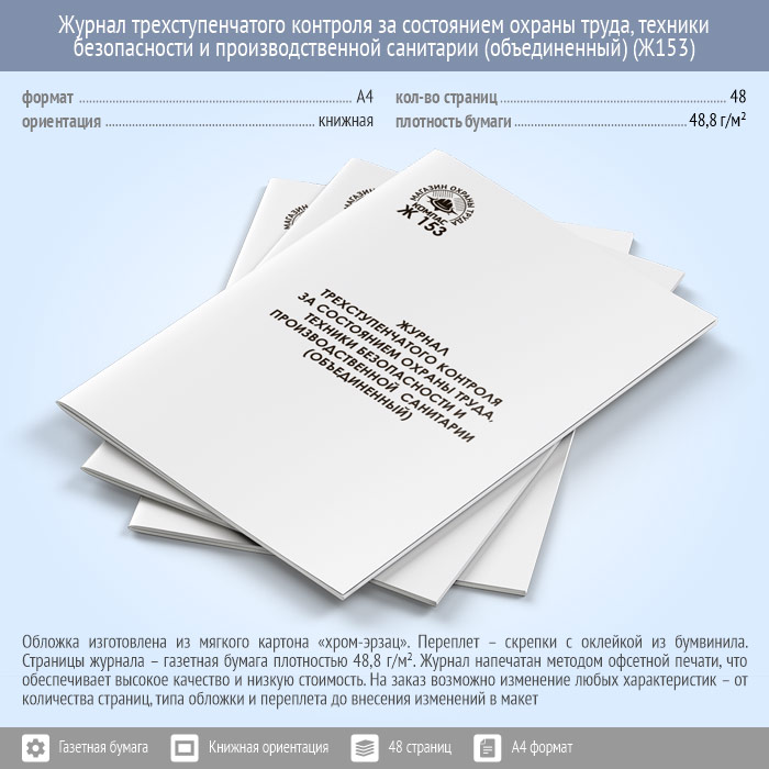 Журнал трехступенчатого контроля за состоянием охраны труда, техники безопасности и производственной санитарии (объединенный) (48 стр., Ж153) в Ульяновске купить