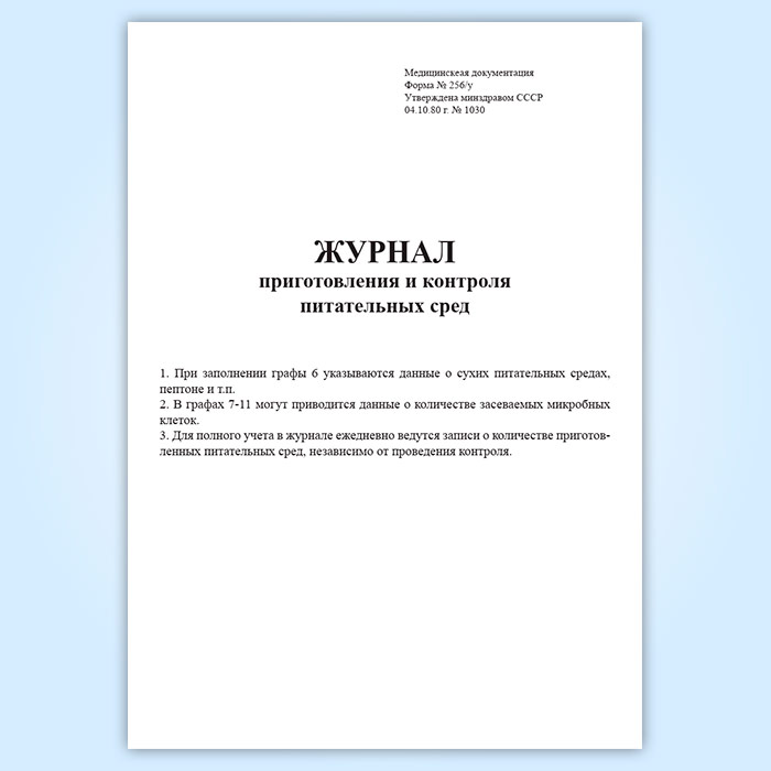 Журнал приготовления и контроля питательных сред (форма 256/у) в Ульяновске купить
