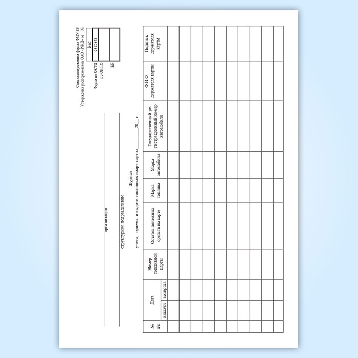 Журнал учета, приема и выдачи топливных смарт-карт в Ульяновске купить