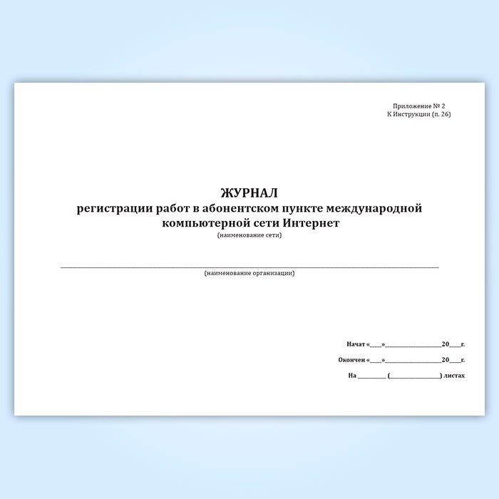 Журнал регистрации работ в абонентском пункте международной компьютерной сети Интернет в Ульяновске купить