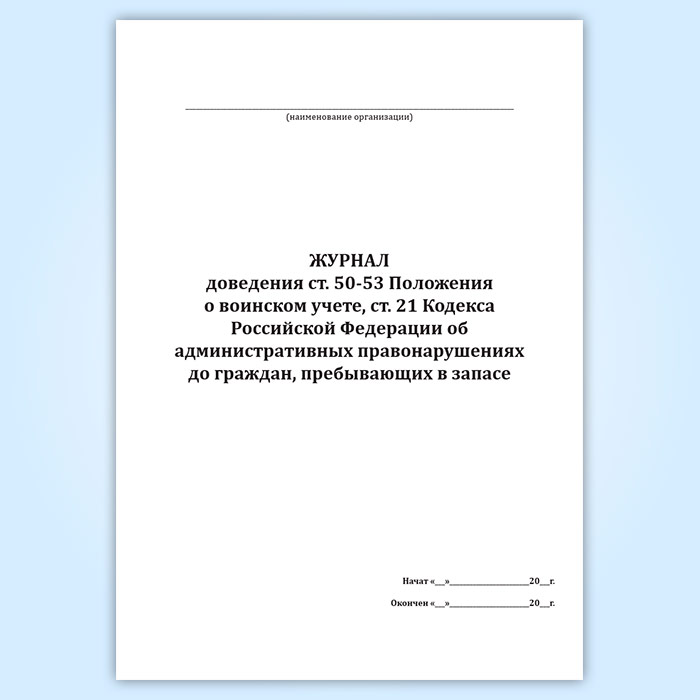 Журнал доведения ст. 50-53 Положения о воинском учете, ст. 21 Кодекса Российской Федерации об административных правонарушениях до граждан, пребывающих в запасе в Ульяновске купить