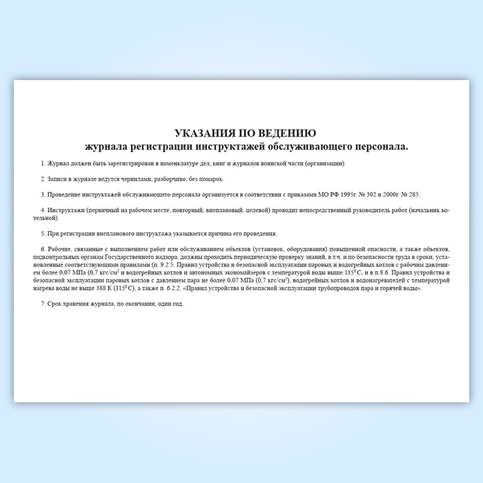 Журнал регистрации инструктажей обслуживающего персонала котельной (для воинских частей, предприятий и организаций) в Ульяновске купить