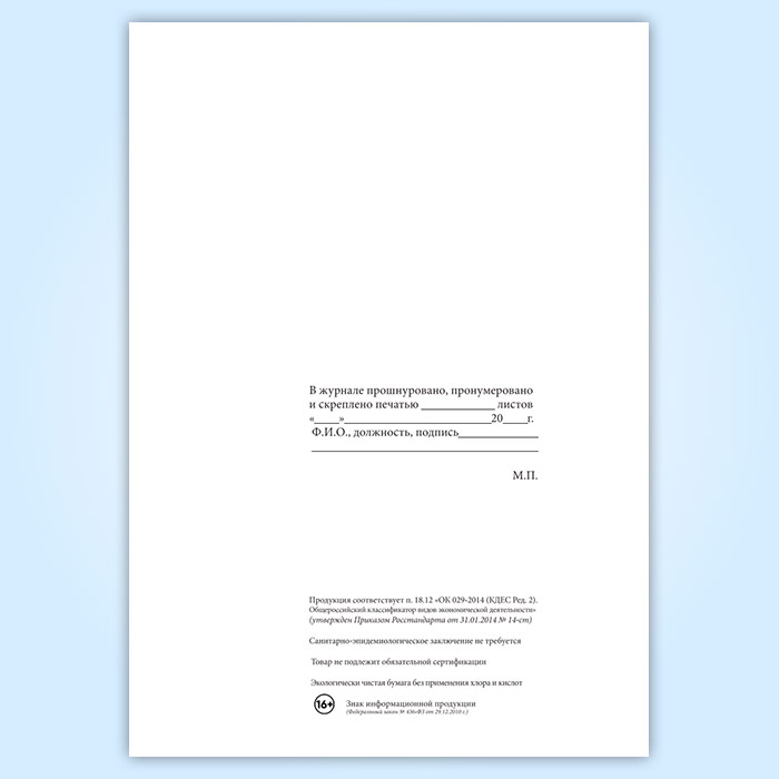Вы получаете печатную продукцию прошнурованной и c местом для вашей печати в соответствии с действующими нормативными документами: