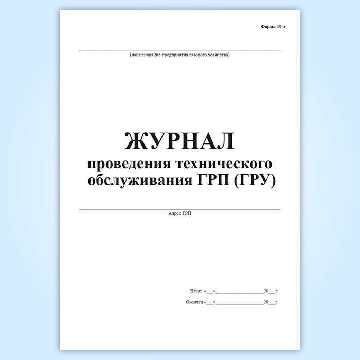 Журнал проведения технического обслуживания ГРП (ГРУ) (форма 19-э) в Ульяновске купить