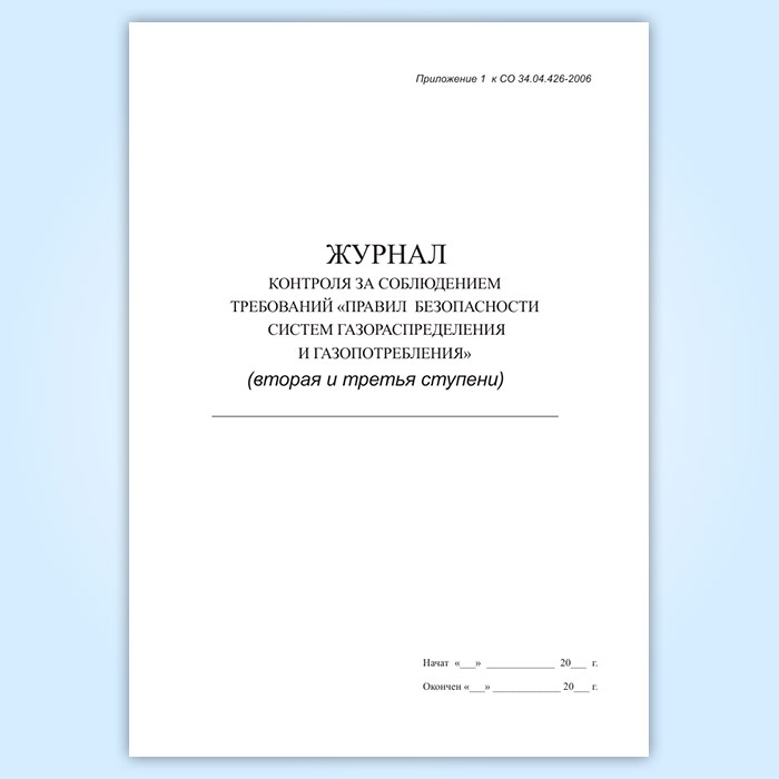 Журнал контроля за соблюдением требований Правил безопасности систем газораспределения и газопотребления (вторая и третья ступени) в Ульяновске купить