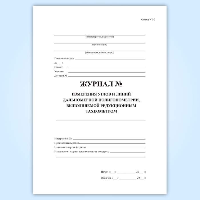 Журнал измерения углов и дальномерной полигонометрии, выполняемой редукционным тахеометром (форма УТ-7) в Ульяновске купить