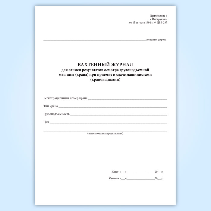 Вахтенный журнал для записи результатов осмотра грузоподъемной машины (крана) при приемке и сдаче машинистами (крановщиками) в Ульяновске купить