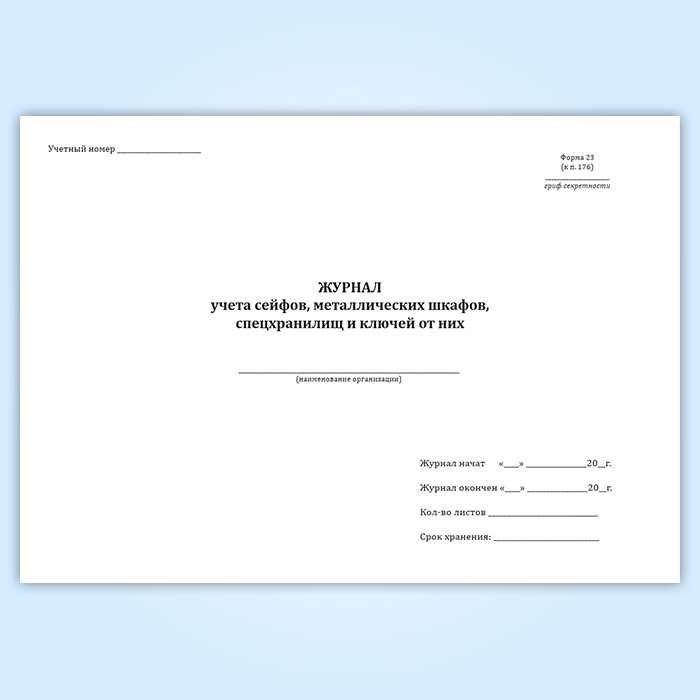 Журнал учета сейфов, металлических шкафов, спецхранилищ и ключей от них в Ульяновске купить