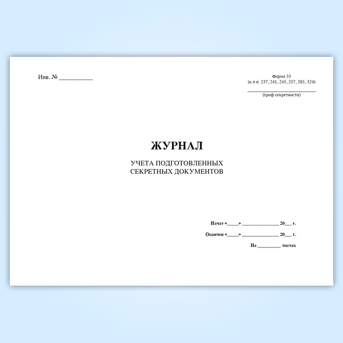 Журнал учета подготовленных секретных документов (форма 33) в Ульяновске купить