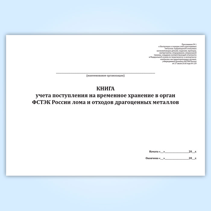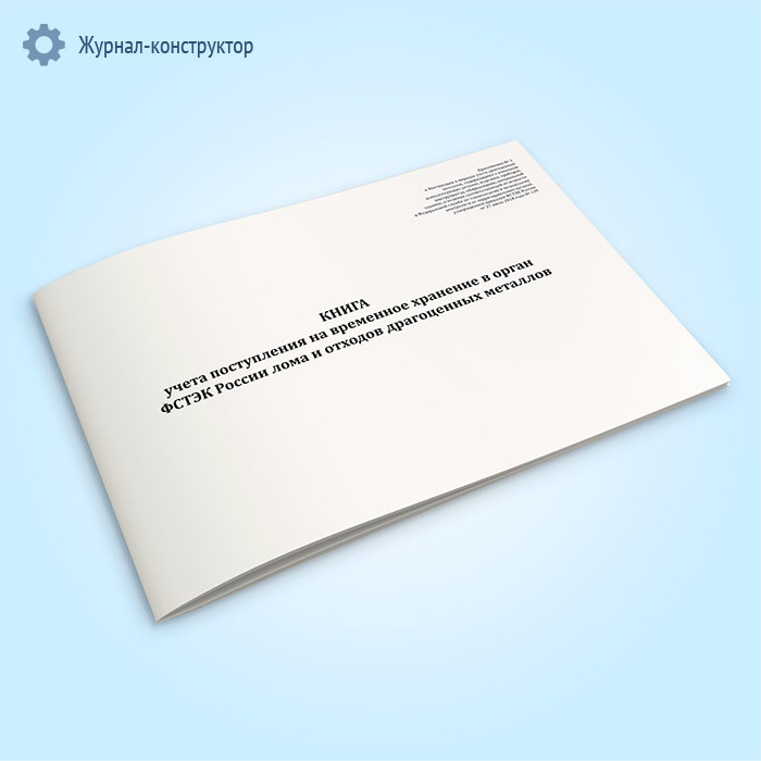 Книга учета поступления на временное хранение в орган ФСТЭК России лома и отходов драгоценных металлов в Ульяновске купить