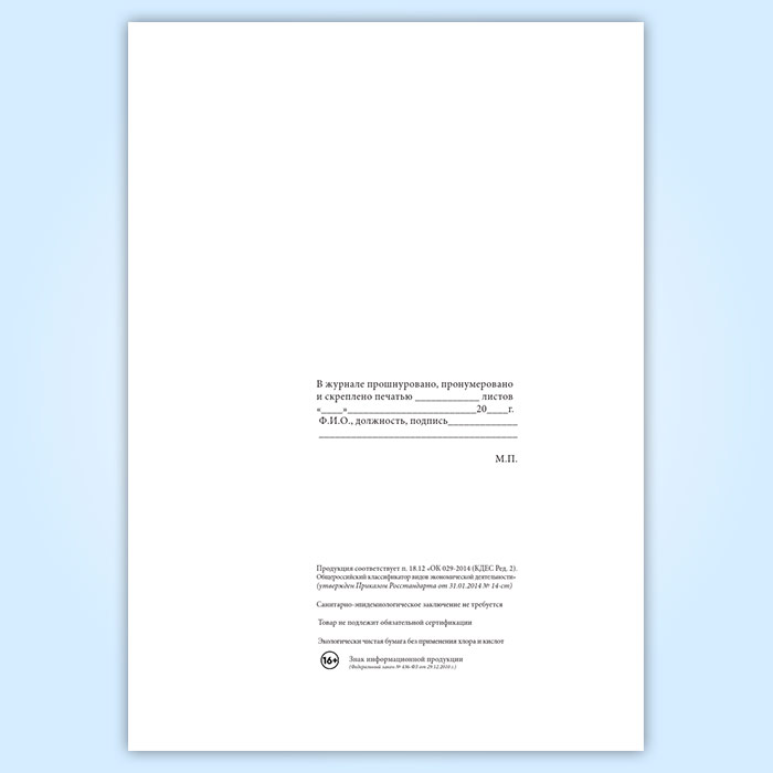 Вы получаете печатную продукцию прошнурованной и c местом для вашей печати в соответствии с действующими нормативными документами: