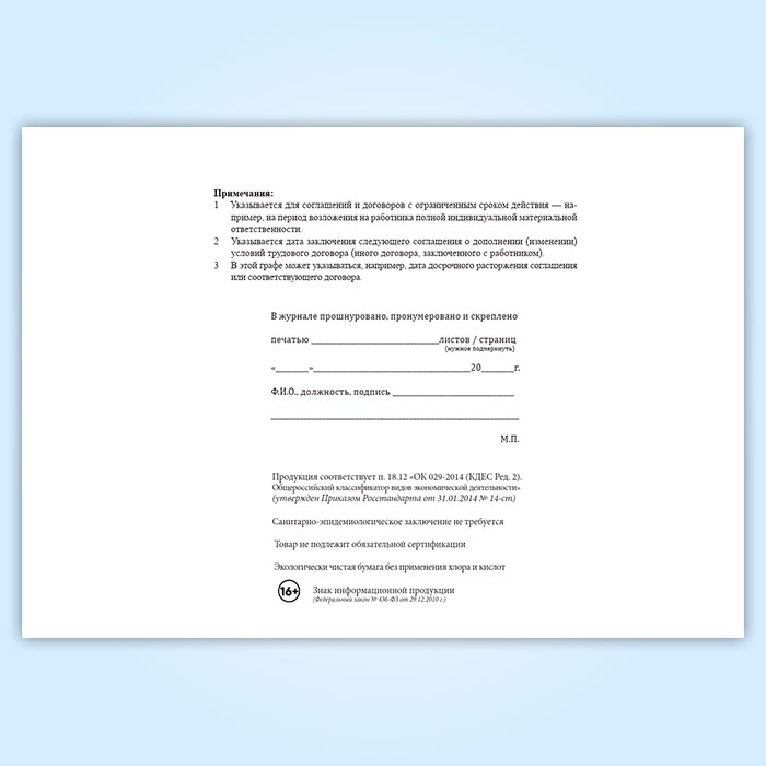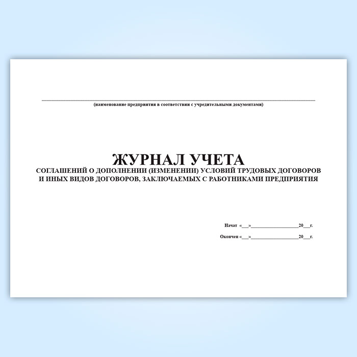 Журнал учета соглашений о дополнении (изменении) условий трудовых договоров и иных видов договоров, заключаемых с работниками предприятия в Ульяновске купить