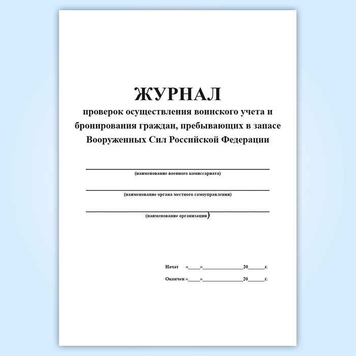 Журнал проверок осуществления воинского учета и бронирования граждан, пребывающих в запасе Вооруженных Сил Российской Федерации в Ульяновске купить