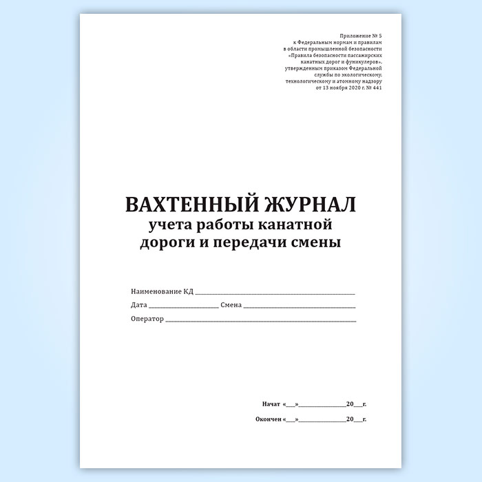 Вахтенный журнал учета работы канатной дороги и передачи смены в Ульяновске купить