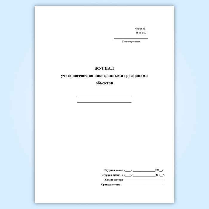 Журнал учета посещения иностранными гражданами объектов (форма 21) в Ульяновске купить