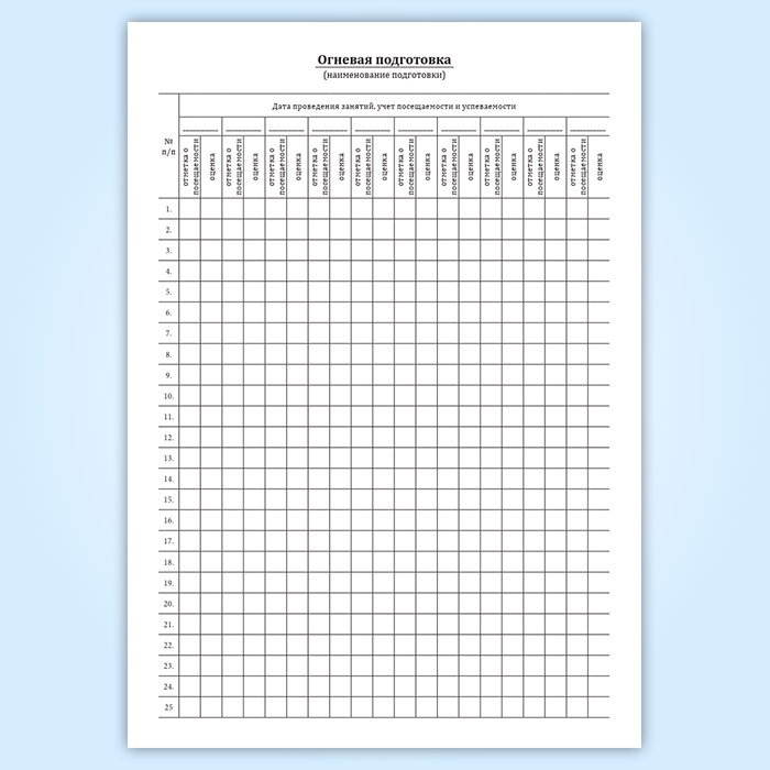 Журнал учета посещаемости занятий и успеваемости сотрудников по профессиональной служебной и физической подготовке в Ульяновске купить