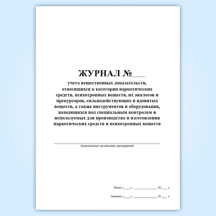 Журнал учета вещественных доказательств, относящихся к категории наркотических средств, психотропных веществ, их аналогов и прекурсоров, сильнодействующих и ядовитых веществ, а также инструментов и оборудования, находящихся под специальным контролем и используемых для производства и изготовления наркотических средств и психотропных веществ в Ульяновске купить