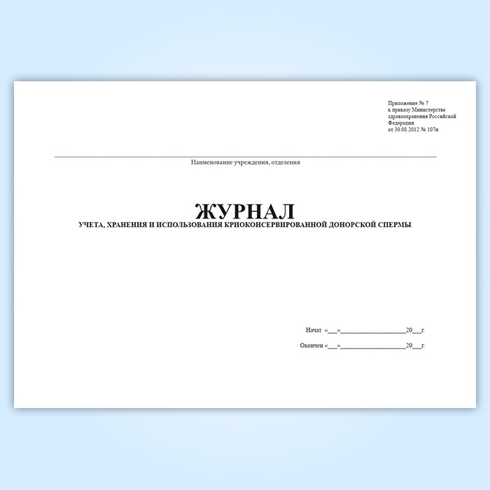 Журнал учета, хранения и использования криоконсервированной донорской спермы в Ульяновске купить
