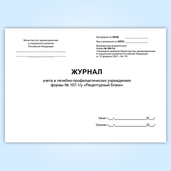 Журнал учета в лечебно-профилактических учреждениях рецептурных бланков формы № 107-1/у (форма № 306-1/у) в Ульяновске купить
