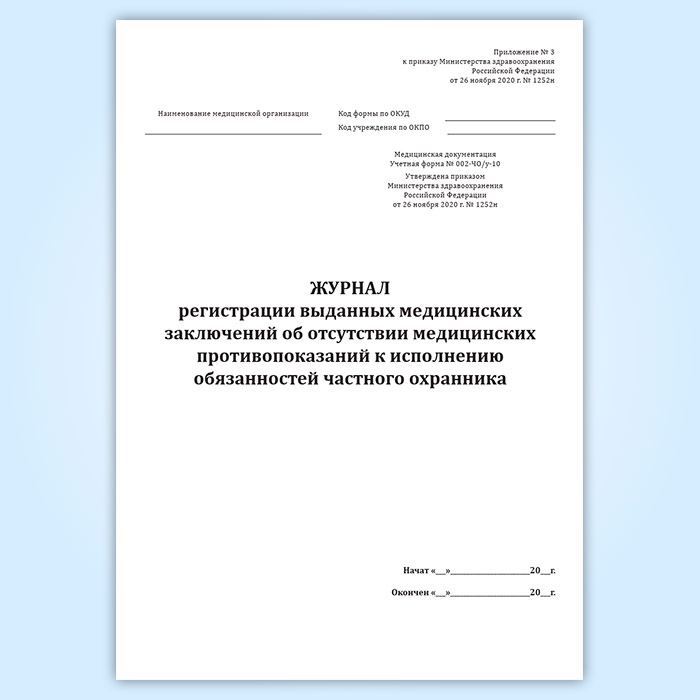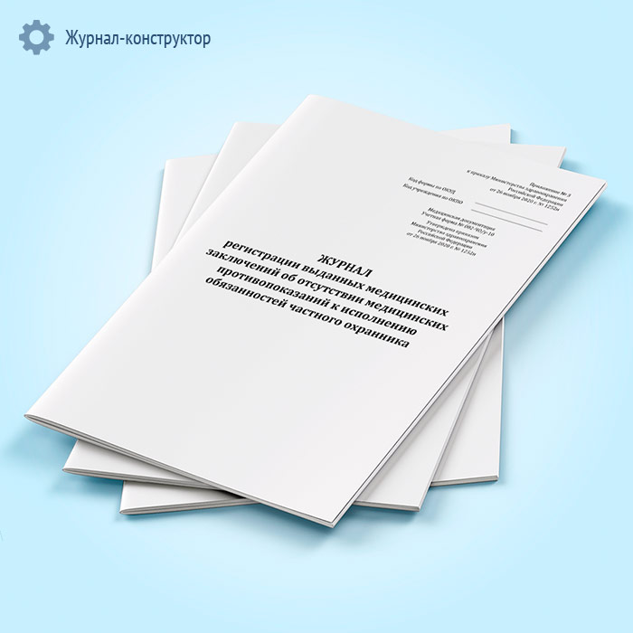 Журнал регистрации выданных медицинских заключений об отсутствии медицинских противопоказаний к исполнению обязанностей частного охранника (учетная форма № 002-ЧО/у-10) в Ульяновске купить
