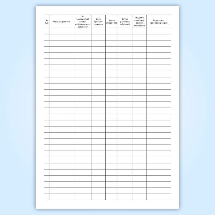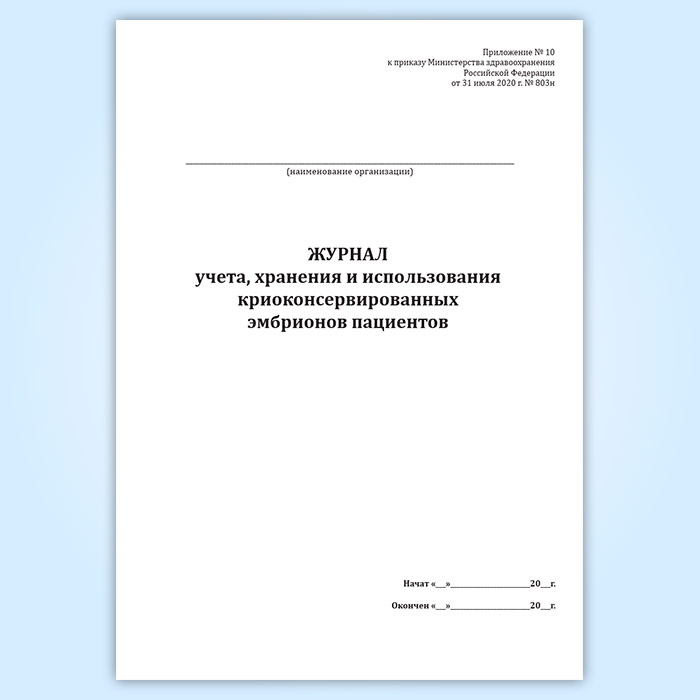 Журнал учета, хранения и использования криоконсервированных эмбрионов пациентов в Ульяновске купить