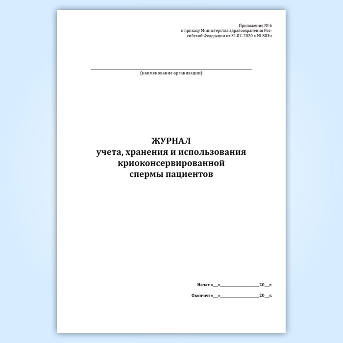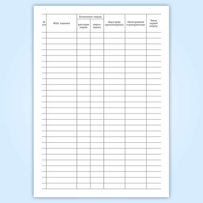 Журнал учета, хранения и использования криоконсервированной спермы пациентов в Ульяновске купить