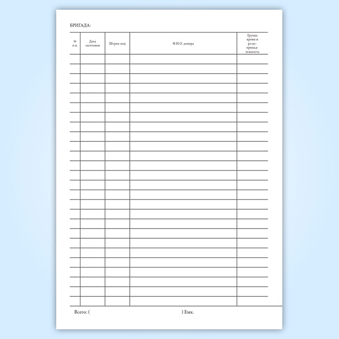 Журнал регистрации замороженной эритроцитной массы (форма 434/у-П1) в Ульяновске купить