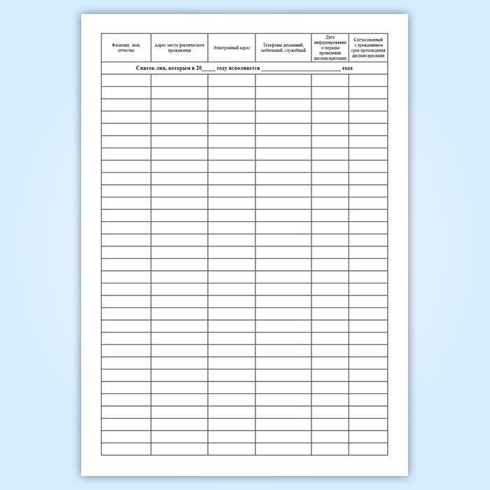 Поименный и повозрастной список граждан терапевтического, в том числе цехового, участка (участка врача общей практики (семейного врача)) в Ульяновске купить