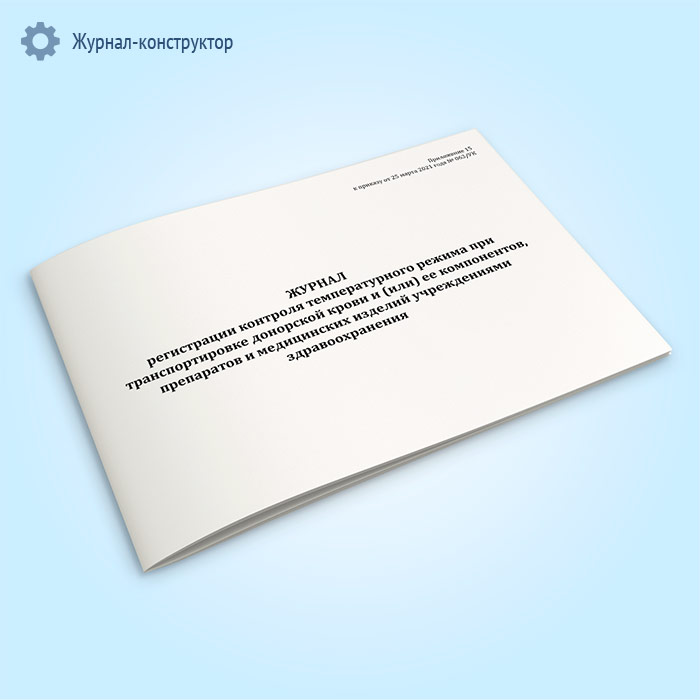 Журнал регистрации контроля температурного режима при транспортировке донорской крови и (или) ее компонентов, препаратов и медицинских изделий учреждениями здравоохранения в Ульяновске купить