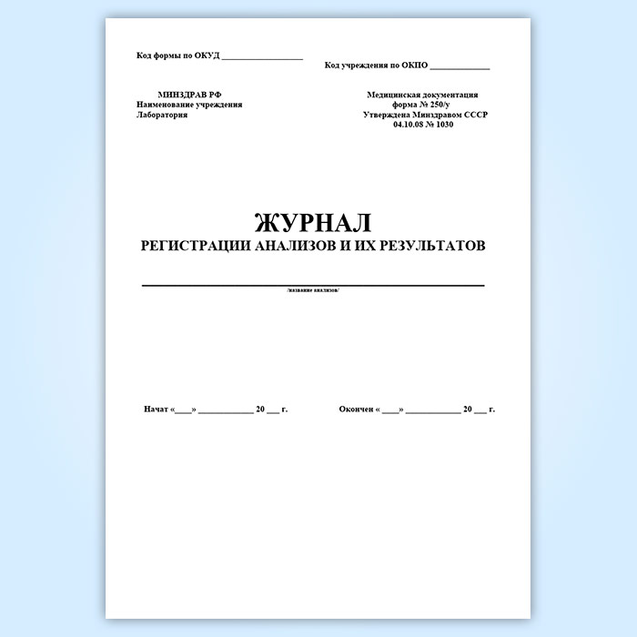 Журнал регистрации анализов и их результатов (форма 250/у) в Ульяновске купить