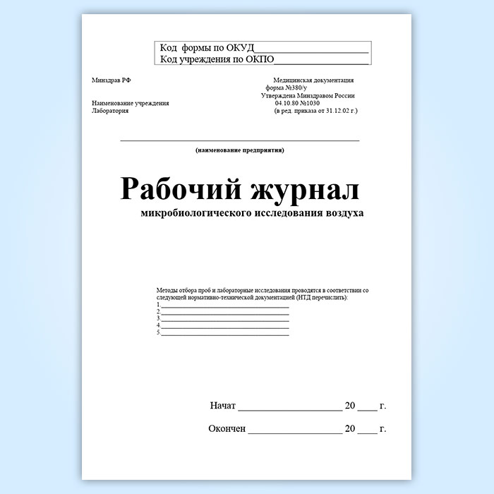 Рабочий журнал микробиологического исследования воздуха (форма 380/у) в Ульяновске купить