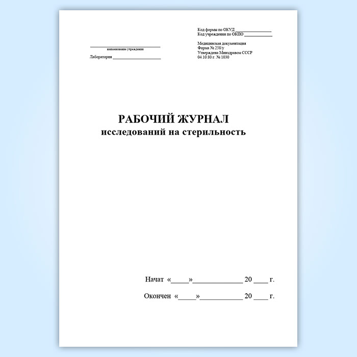 Рабочий журнал исследований на стерильность (форма 258/у) в Ульяновске купить