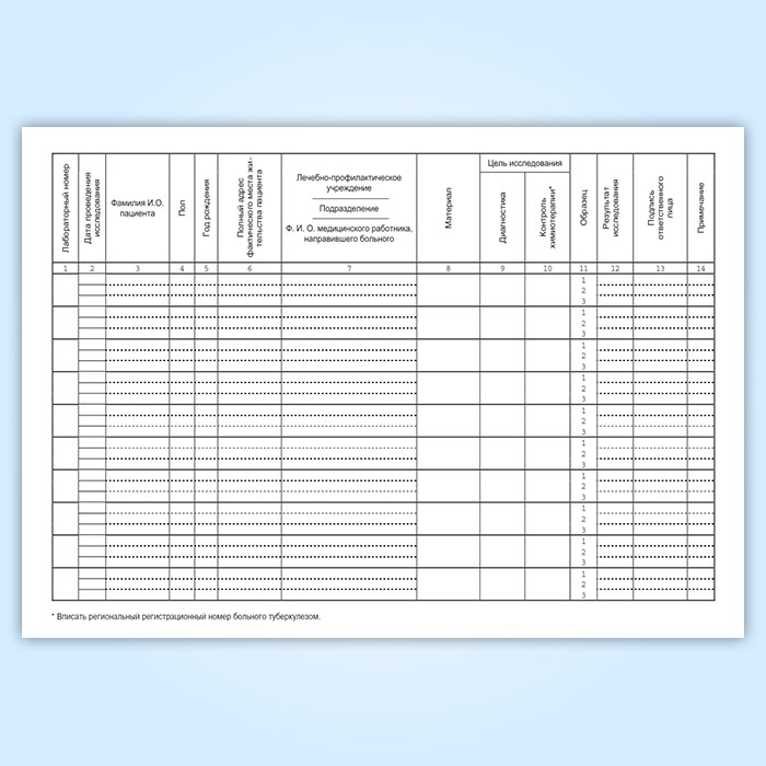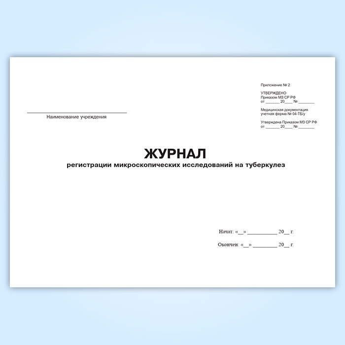Журнал регистрации диагностического материала, собранного для микроскопических исследований на туберкулез (форма № 04-1-ТБ/у) в Ульяновске купить