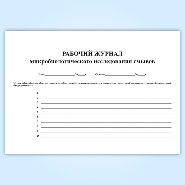 Рабочий журнал микробиологического исследования смывов (форма № 381у) в Ульяновске купить