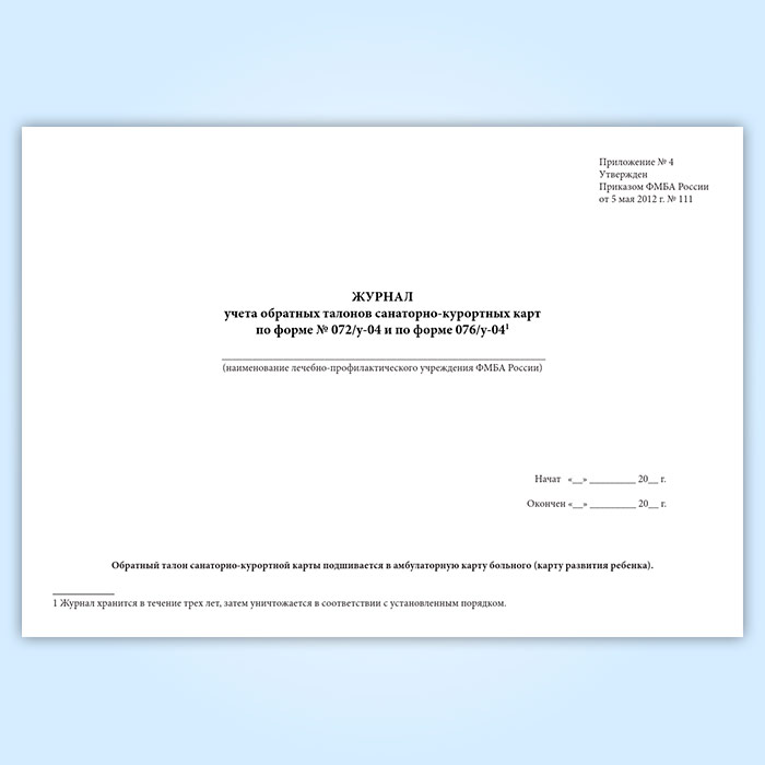 Журнал учета обратных талонов санаторно-курортных карт по форме (№ 072/у-04 и по форме 076/у-04 ) в Ульяновске купить