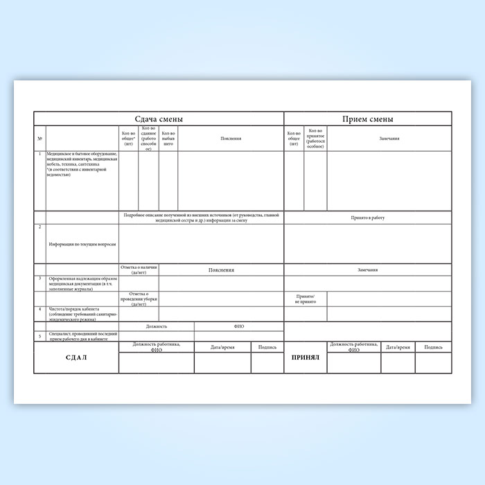 Журнал приема-передачи смен (для мед.персонала) в Ульяновске купить