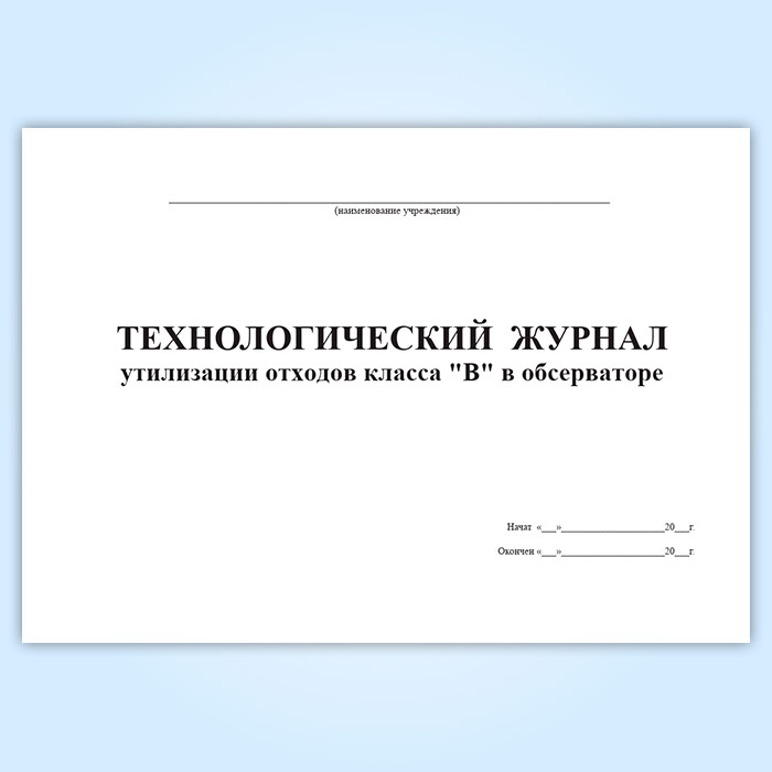 Технологический журнал утилизации отходов класса «В» в обсерваторе в Ульяновске купить