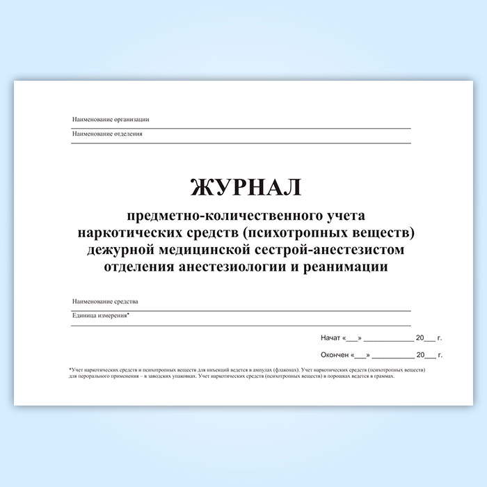 Журнал предметно-количественного учета наркотических средств (психотропных веществ) дежурной медицинской сестрой-анастезистом отделения анастезиологии и реанимации в Ульяновске купить