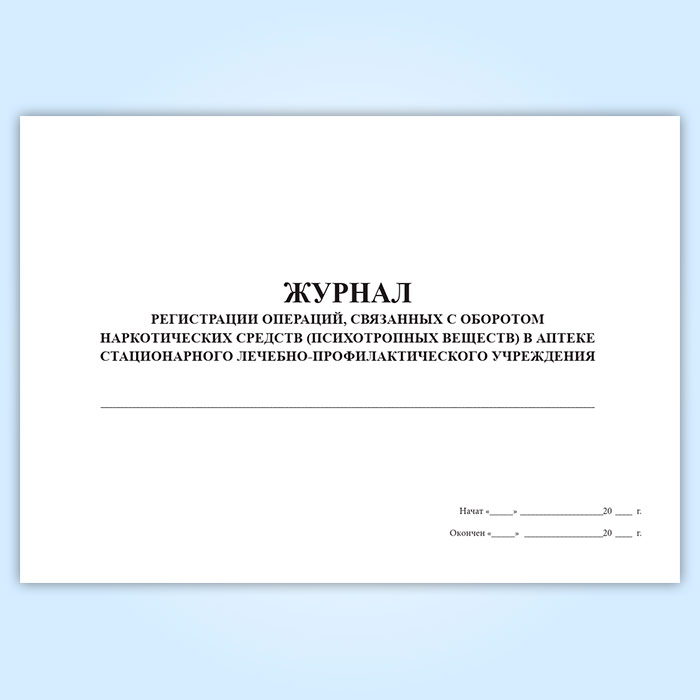 Журнал регистрации операций, связанных с оборотом наркотических средств и психотропных веществ в аптеке медицинской организации в Ульяновске купить