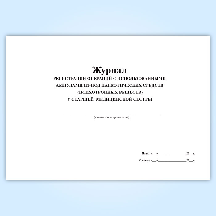 Журнал регистрации операций с использованными ампулами из-под наркотических средств (психотропных веществ) у старшей медицинской сестры в Ульяновске купить